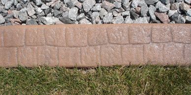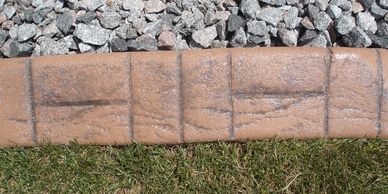 This type of curb is used where the grass meets your landscape. The front edge is lower to allow your mower to pass along, while the back is raised, keeping your mulch or stone in the beds where it belongs.